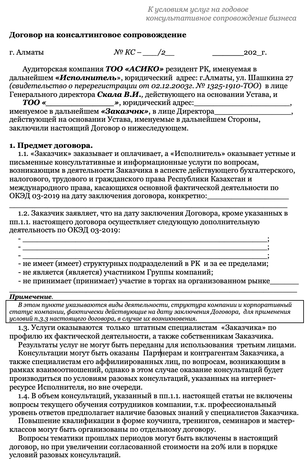 Договор на консалтинговое сопровождение
